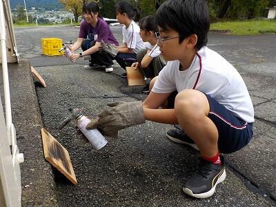 2日目は、使った場所や物を片づけたり、焼き板工作をしたりしました。