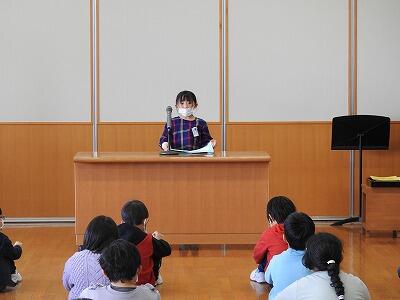 始業式では、2年生の代表者が「3学期がんばりたいこと」の発表をしました。