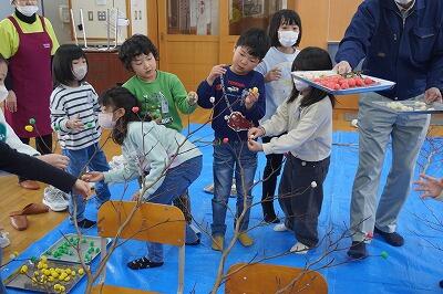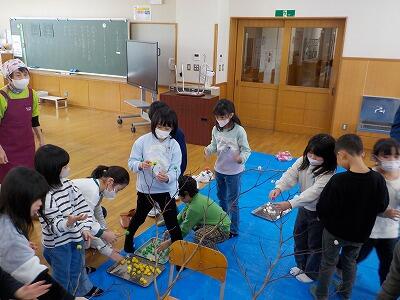 だんご木に願いをこめて 投稿: 醍醐小学校 (16:05) 1月14日(水)に1・2年生がだんご木づくりを行いました。 だんごづくりでは、生地が手にくっついて難しそうにしていましたが、徐々に慣れていき、楽しみながら作ることができました。 作っただんごは、色のバランスに気をつけながら木に刺していきました。 家族の安全などを願いながら心をこめて作っただんご木は、玄関ホールに飾っています。 ご参加いただいた地域の皆様、ありがとうございました。